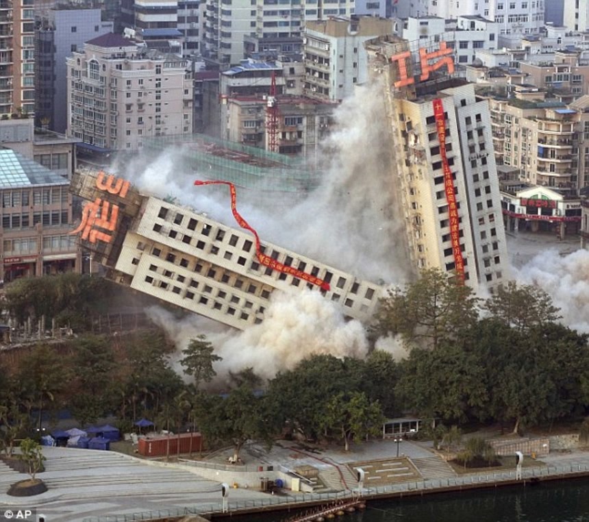この画像を大きなサイズで見る昨年12月30日、中国の広西チワン族自治区柳州市で、高層マンションの爆破解体が行われたそうなんだけれども、見事にミッション失敗。傾いたまま半分だけ残って新名所、ピサの斜塔が出来上がっちゃったみたいなんだ。