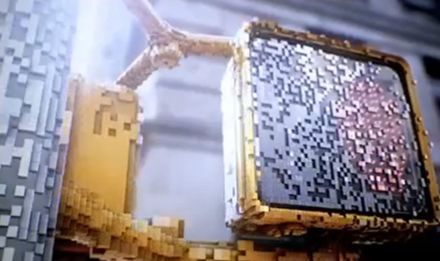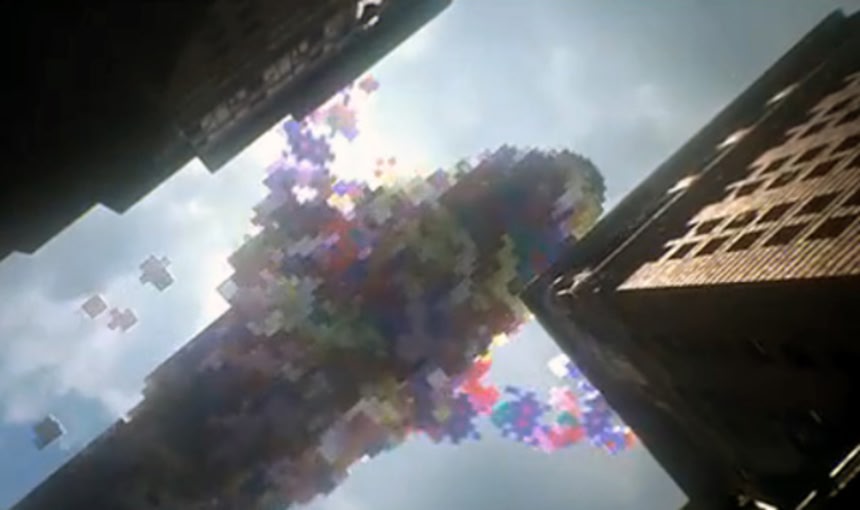 この画像を大きなサイズで見るテレビの中からピクセルのブロックがどんどん飛び出してくる