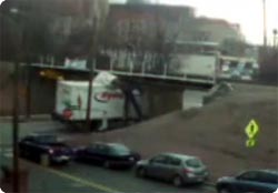 アメリカ、ノースカロライナ州にある道路の下を通る橋桁部分は、低すぎて事故多発地帯。3.5メートルほどの高さ制限がある