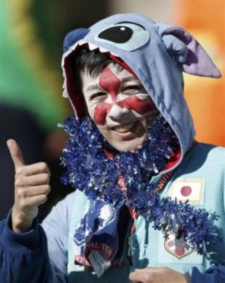 これだけ仮装すれば、会社に嘘ついてサッカー見に行ってもバレないな~。