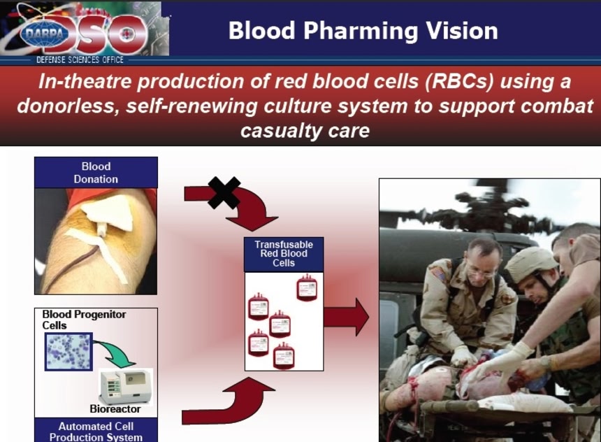 この画像を大きなサイズで見る2008年、米国防総省の国防高等研究計画庁(DARPA) は『血液ファーミング』(Blood Pharming)というプログラムを立ち上げたそうだ。