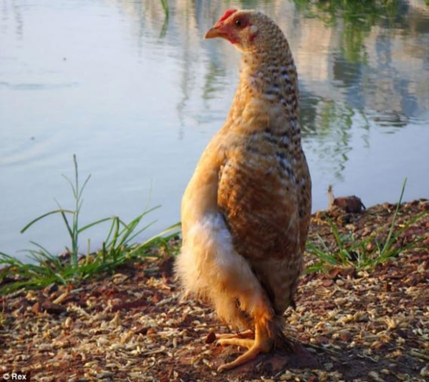 中国東部の江蘇省の漁師のリュー・ヨンさんが飼っているこのニワトリ(メンドリ)は、ヒヨコの頃から、他のヒヨコたちとは違っていたそうで、仲間たちがエサを食べるために地面を突ついたりするのを嘲笑するかのように、自分だけは常にペンギンの誇り?を持ち、直立状態を続けていたんだとか。