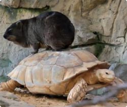 動物園で来場者を前に、自慢げにカメに乗りほくそえむ輩が現れたみたいなんだ。「カメックスゲットなんだぜ!」ってことか?ていうかこの動物なんだっけ?ハイラックスかな?