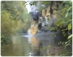 爆発の瞬間、左の陸から何かの動物がびっくりして水上を走ってるw