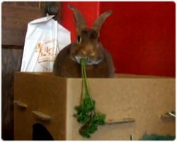 ウサギやネズミなど、げっ歯類のお食事風景は見ていて飽きないっていうか目を見張るものがあるよね。ということでこのウサギさんが茎のながーいパセリを下から上まで食らい尽くすまでを堪能できる映像なんだ。