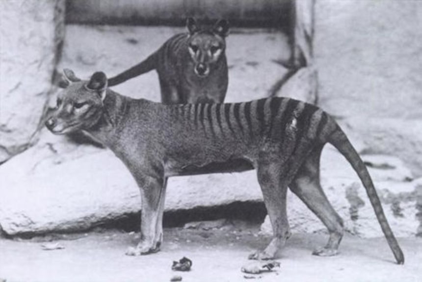 タスマニアタイガー(フクロオオカミ)は、、1936年に絶滅と言われているオーストラリアのタスマニア島に生息していた、哺乳類フクロネコ目の大型肉食獣。