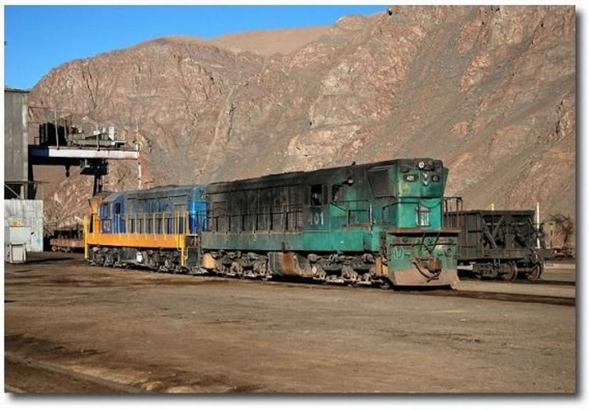 荒れた大地に、錆びた鉱山鉄道。アタカマ砂漠を連想させる乾いた大地との共演。