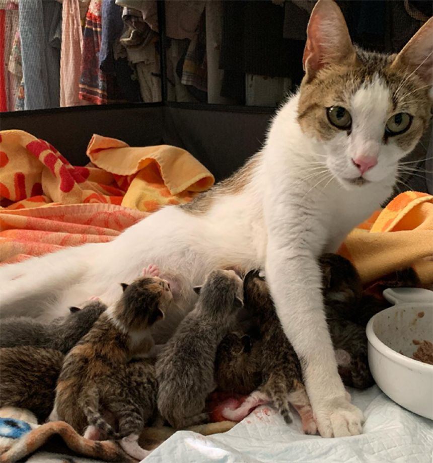 そしてなんと、9匹の子猫が誕生したのだ。普通の猫なら1回の出産で平均3~5匹の子猫を産むのでその倍だ。