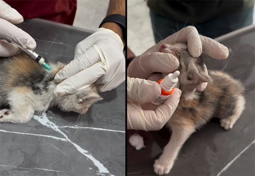向かった先は動物病院だ。病院ではすぐに子猫を受け入れ治療を開始した。