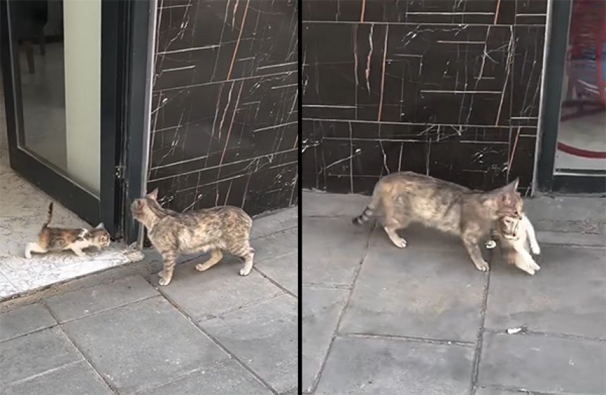 助けを求めて動物病院へ 子猫をくわえて現れた母猫