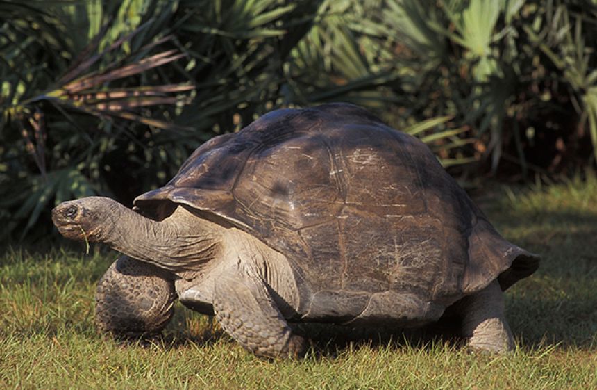 ガラパゴスゾウガメは、エクアドルのガラパゴス諸島にのみ自然分布する世界最大級のリクガメで、体重は250kgを超え、体長も1.5mに達することがある。