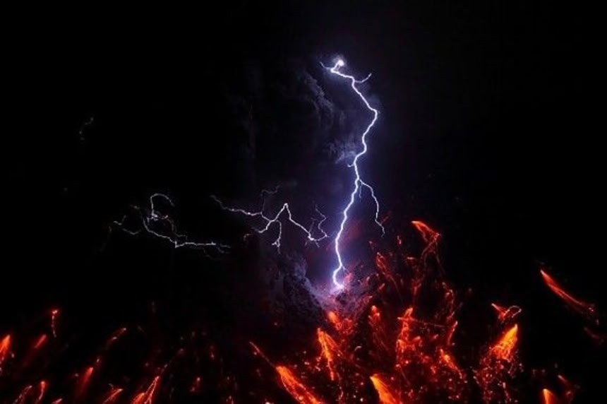 「火山雷」は、激しい噴火が起こったとき、噴煙の中やその周辺の狭い範囲で雷鳴と稲光が発生する現象のこと。火山が噴き上げる水蒸気、火山灰、火山岩などの摩擦電気により生じる。また、水蒸気が少ない場合でも発生する場合があるんだそうだ。