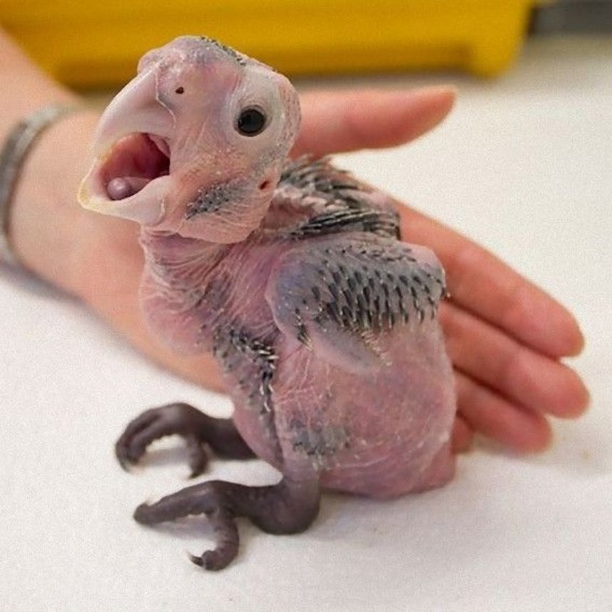 ヤシオウムはニューギニアと周辺諸島、オーストラリア北部に生息するオウムの仲間。そのパンクロックなモヒカンヘアスタイルがマニアのハートを惹きつけて止まないのだが、生まれたばかりのヤシオウムは、自慢の毛も生えそろっていなくて、まあこれはこれでかわいいんだけど、オーストラリア、アデレード動物園で、初の人工飼育に成功したという、ヤシオウムの成長記録写真が公開されていたので、その劇的ビフォア・アフターを目に焼き付けてみればいいと思うんだ。