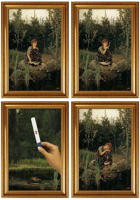 世界的に愛し愛され有名になった名画の数々。いろいろ想像を膨らませながら見ていくうちに、4コマ漫画のようなオチを作り上げてしまった名画ビフォア・アフターの世界が今ここに完成したようだよ。