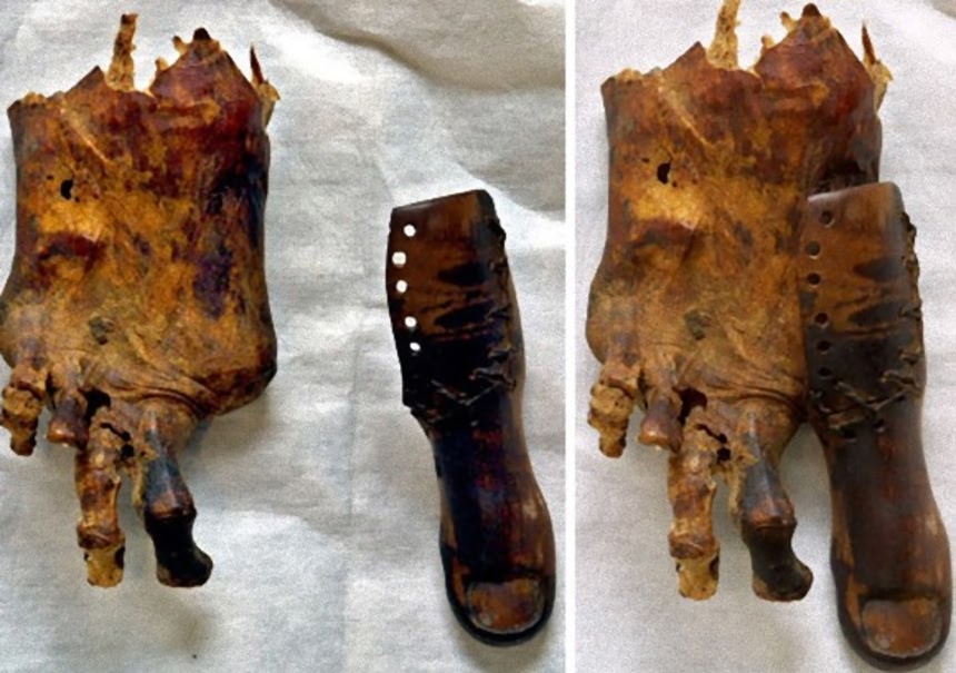 2000年にルクソールの近くで発掘された高位の僧侶の娘、Tabaketenmutのミイラの右足には、木と皮で作られた保存状態の極めて良い大きな人工親指がくくり付けられていた。本来の親指は糖尿病のよる壊疽(えそ)で失ったと考えられる。