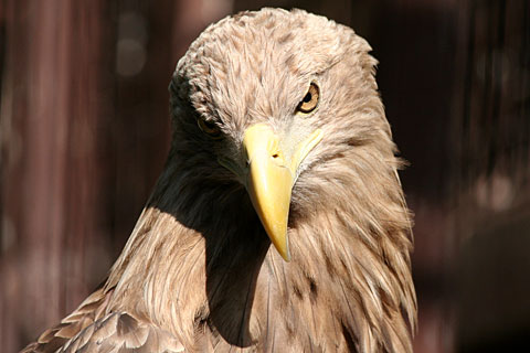 鷹や鷲は面長だからそう見えるけど、目は正面だよ