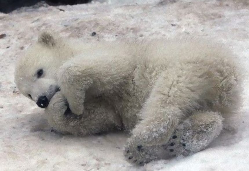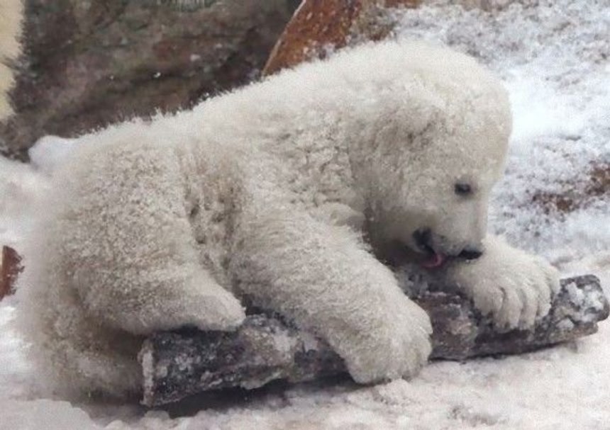 デンマークのオールボー動物園で生まれたシロクマの赤ちゃん。現在生後3ヶ月で、初めて見る雪に大喜びなんだそうだ。お母さんが雪の上につけた足跡が面白くて仕方がないみたいだよ。