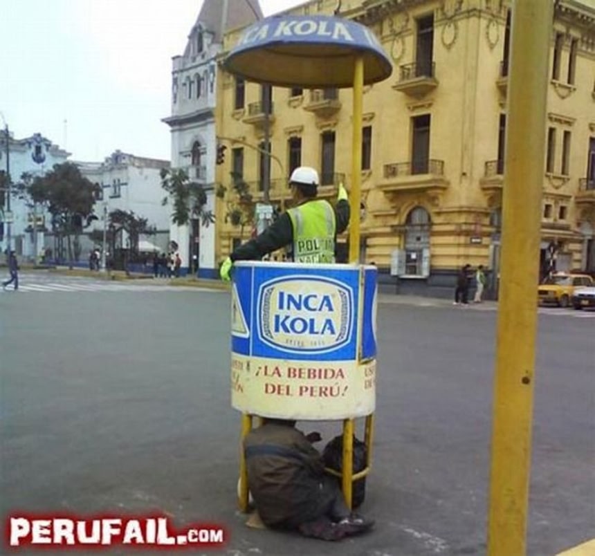 この画像を大きなサイズで見る交通整理用台座の下に住む人とそれを容認する交通整理員