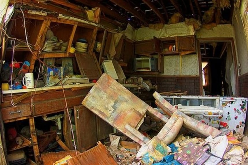一部ゴーストタウンと化した住宅街は、災害時から6年たった今でも災害直後の状態のまま何の手も加えられず残されているという。