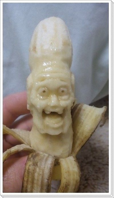 エルム街の悪夢シリーズでフレディーがこんな感じのミニ食材になった犠牲者の頭をおいしそうに食うシーン思い出した。バナナじゃないけど