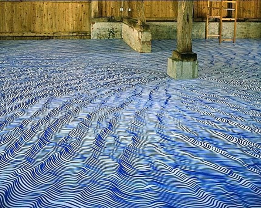 床一面、時に壁一面に流れる指紋のような模様が描かれている、そんな脳と視覚神経を麻痺させそうなアート作品。数時間で何かが壊れ落ちそうだけども、一度この部屋にロックオンされてみたいという好奇心をひきつける魔力を秘めているんだ。