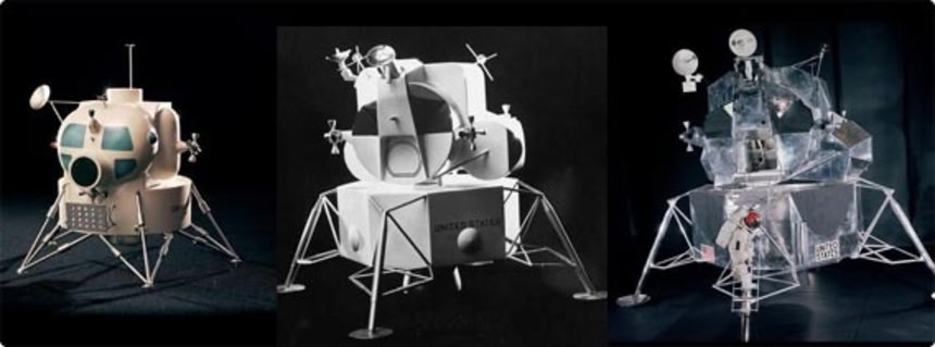 この画像を大きなサイズで見る宇宙を目指して。プロジェクトが発足したらまずは宇宙船開発。設計図を元にまずはミニチュア模型が作られていくわけなんだけど、、歴史上初めて人類を月面に到達させた宇宙飛行船 アポロ11号の宇宙船の模型には人類の夢と希望がたっぷり詰まっていてなかなか愛すべきレトロキュートな形をしているんだ。