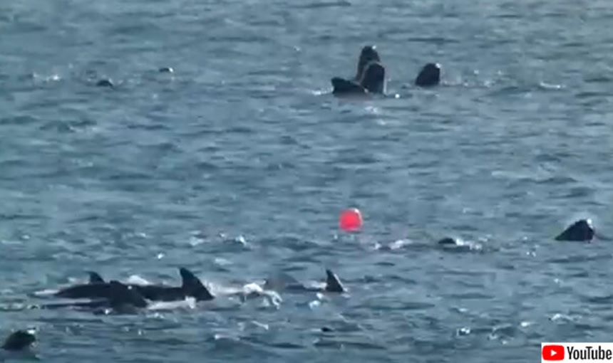 ゴンドウクジラは群で協力して身を守る性質を持っており、傷ついた仲間が一匹でも岸に残っていると、群全体が岸にとどまってしまうので、すべてのクジラが座礁したまま衰弱して死んでしまう危険性があるという。