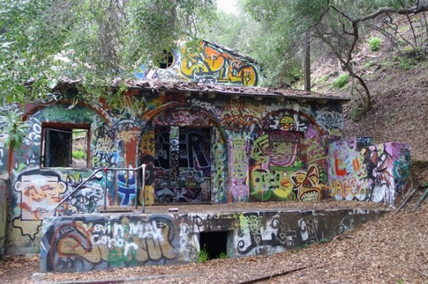 この画像を大きなサイズで見る1933年から1945年の間にかけて、米カリフォルニア州ロサンジェルス、サンタモニカ山地に秘密裏に作られたと言うナチス施設「マーフィー牧場」。現在この地はロサンゼルス市が所有しているトパンガ州立公園内管轄区となっている。