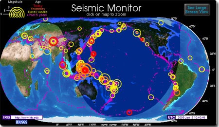 リアルタイムで地震が発生している場所がわかる、世界地震MAP