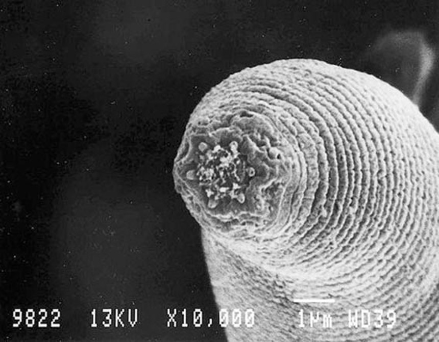 この画像を大きなサイズで見る最初にこの虫の存在が確認できた場所は、南アフリカの金鉱の底深くだったそうで、この線虫が抗夫によって持ち込まれたものか、岩から出てきたものかを探る為に調査研究を重ねた結果、この線虫が数千年以上前からこの地下に生息したことが判明したという。