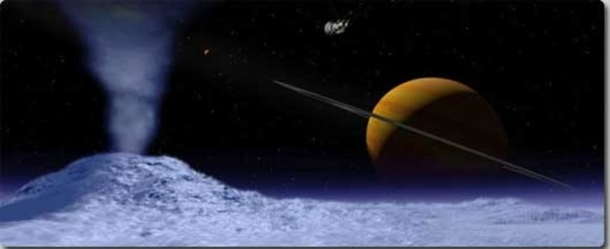 この画像を大きなサイズで見るエンケラドスには液体の水、有機炭素、窒素など生命を形成するのに必要とされる元素などが見つかっている。エンケラドスは氷火山活動も観測されており、その付近には液体の水が大量にある可能性が高いと考えられている。