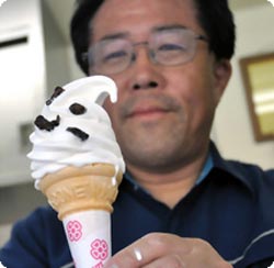 ソフトクリームにイナゴが刺さった「バッタアイス」が大好評発売中(長野)