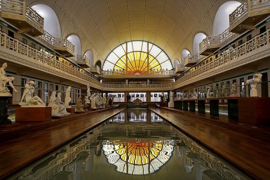 この画像を大きなサイズで見る安全性の問題から1985年に閉鎖されていたというフランス、ルべのプールは、取り壊すにはあまりにも美しすぎるとして、水を張った状態でそのまま美術館として改築されたという一風変わった美術館。