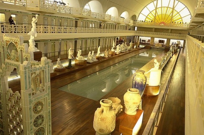 1927年~1932年に、建築家アルバートBaertによって建てられたというプールには、ほんとにプールなのかよ?ここで泳いでたんかよ?と目を疑うほどのアール・ヌーヴォー調のつくりで、プールサイドにはクラッシックなヌーディスト石像たちがずらっと立ち並んでいる。ここで泳ぐのはなんかこっぱずかしい気もするんだけど、おフランスという土地柄を考えればこれはこれで一興だったんだと思うんだ。