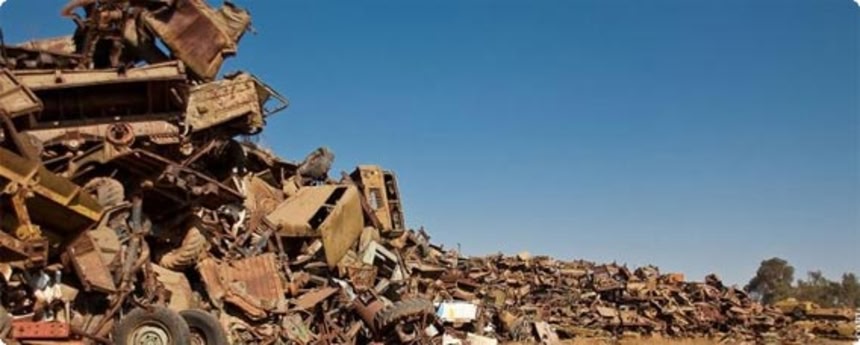 アフリカ・エリトリアにある戦車などがうずたかく積まれた戦車の墓場