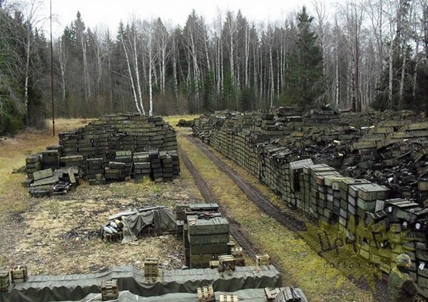 ロシアの西部軍管区にて、法律に違反した方法で保管されているという武器弾薬。90のワゴンに大量の弾薬が野ざらしでストックされている。もしなにかあったらと思うとかなりゾっとする光景だ。