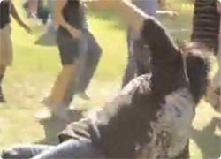 映像には、幽霊に突き飛ばされコケる観客の様子が映し出されている。「持ってる」人なら突き飛ばした幽霊が見えているはずなんだ。うんきっとそう。