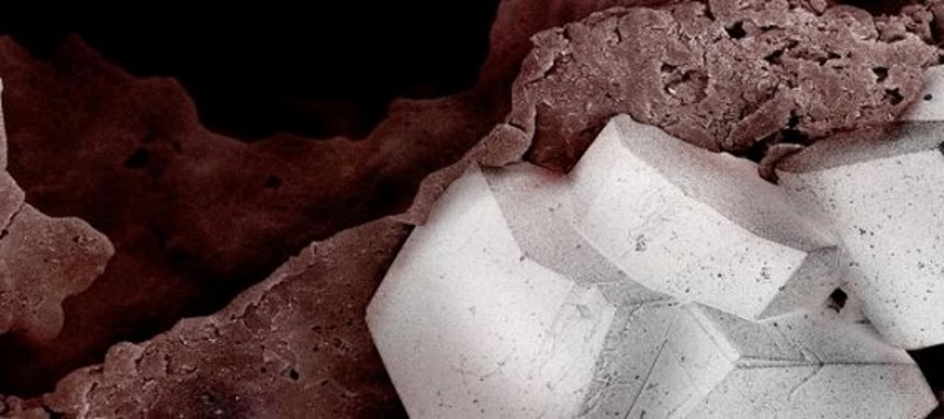 水溶性だから顕微鏡では普通見えないだろうし、結晶の写真という感じもしないような。