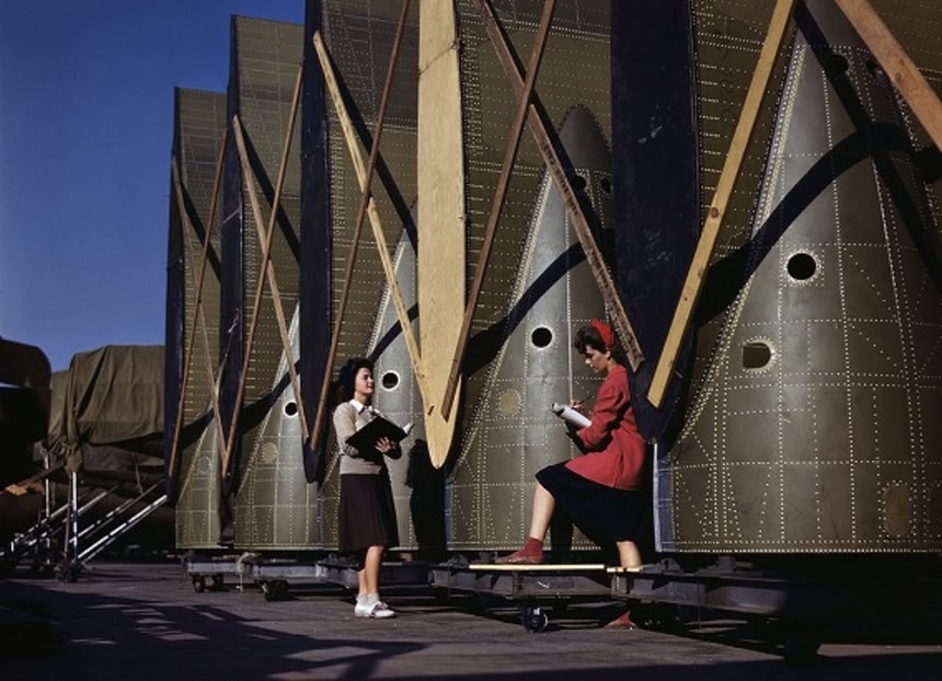 これらの画像は戦時情報局指導の下作製された、第二次大戦中のカラー写真。軍事産業で働く美しい女性や、研ぎ澄まされた兵隊が、国家の象徴のように綺麗に撮影されたもの。