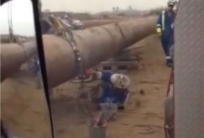 老築パイプラインのアセチレンガス溶断作業だね 残留ガスに引火してますね