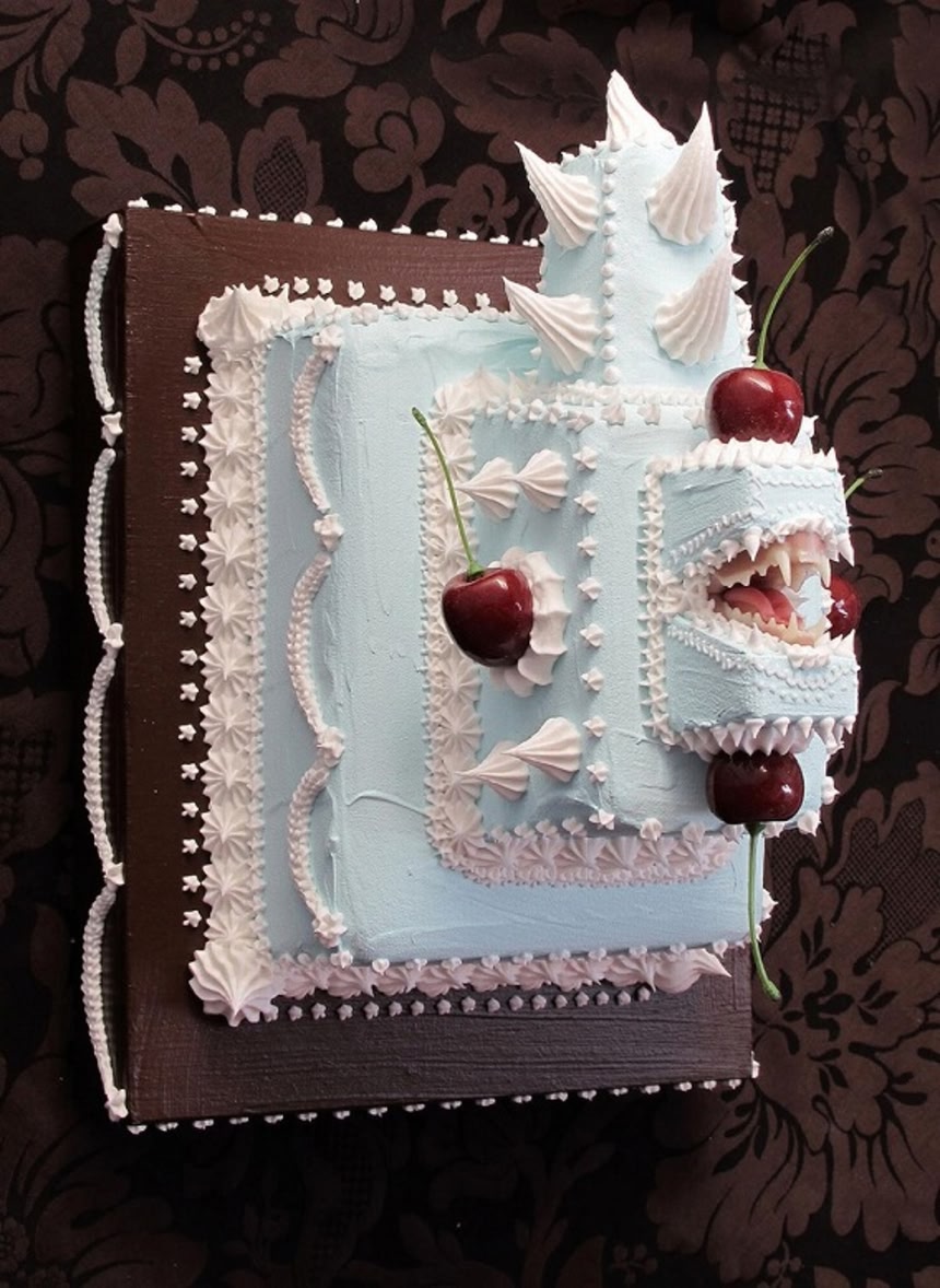 アメリカ、オークランドを拠点として活躍中の新鋭アーティスト、スコット・ホーブが手がけたのは、食べるつもりが逆に食べられそうになる、ぱっくりと口を開け、鋭い牙を持ったグロ怖いケーキ。子どもの誕生日に、こんなケーキを出したら、トラウマ記念日となること請け合いなんだ。