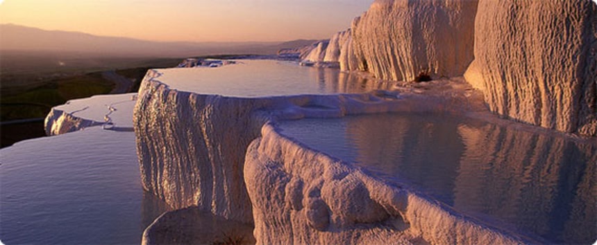 大地から湧き出でた温泉が作り出した白く美しい石灰華段丘、世界遺産「トルコ、綿の城塞:パムッカレ」