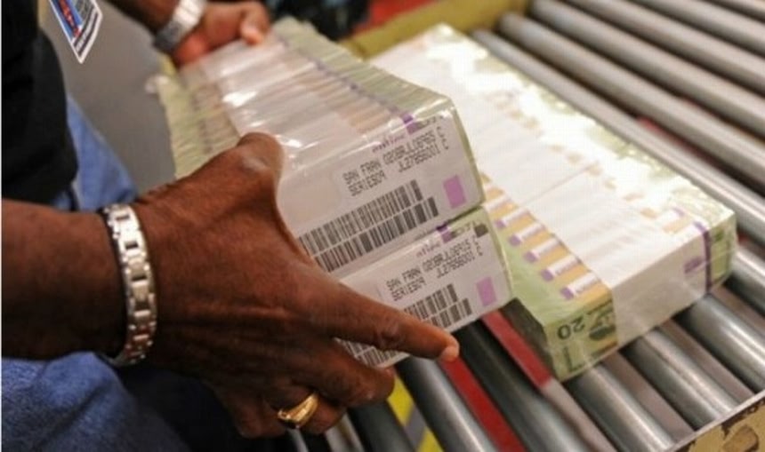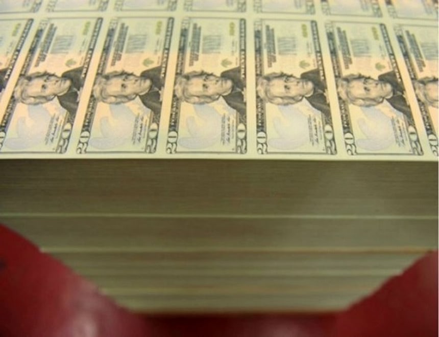 この画像を大きなサイズで見る連邦政府と財務省シールが刻印された20ドル札1万枚
