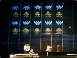 プロジェクトマッピングを利用して映し出されたのは世界最大のインベーダーゲーム画面。そしてこの画面をプレイするにはコントローラーではなくサッカーボール。プレイするのはイギリス、チェルシーFC の面々だ。