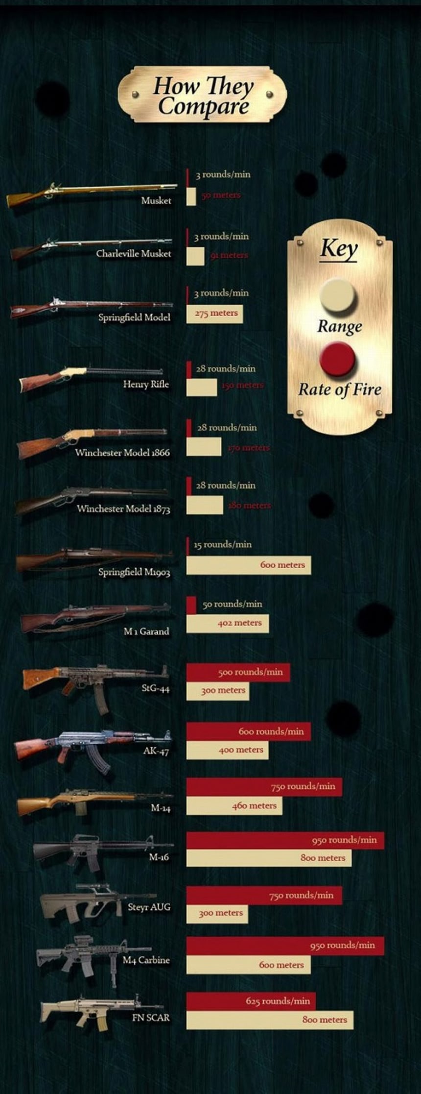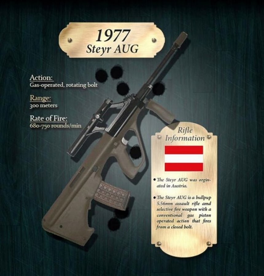 1600年代のマスケット銃にはじまり、2007年のSN SCARまで、年代順に進化していくライフル銃の歴史がわかりやすく図解された画像が特集されていた。こうやって見てみると、やはり世界大戦中の1900年代に飛躍的にライフル銃が進化していったわけなんだね。