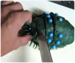 隣人が車のドアのスライドで指落としたの見たことある投稿者が、それにインスパイアされて?てらってらに輝くリアルな手を作り上げたそうだ。この斬手は肉まんの皮の材料と同じもので作られているので、最後はおいしく召し上がっていたよ。(リアルに近いできばえなので閲覧注意でお願いします)