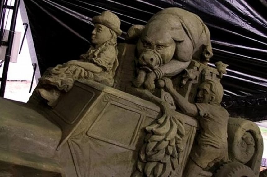 氷や雪でつくった白い巨大彫刻もいいが、砂で作った巨大彫刻は、その砂茶けた色が刹那を感じさせ、またこれはこれで味がある。ということでコロンビアの首都ボゴタにて、砂と水で作った彫刻100点以上を展示する「砂の彫刻展」が開催されたそうだ。