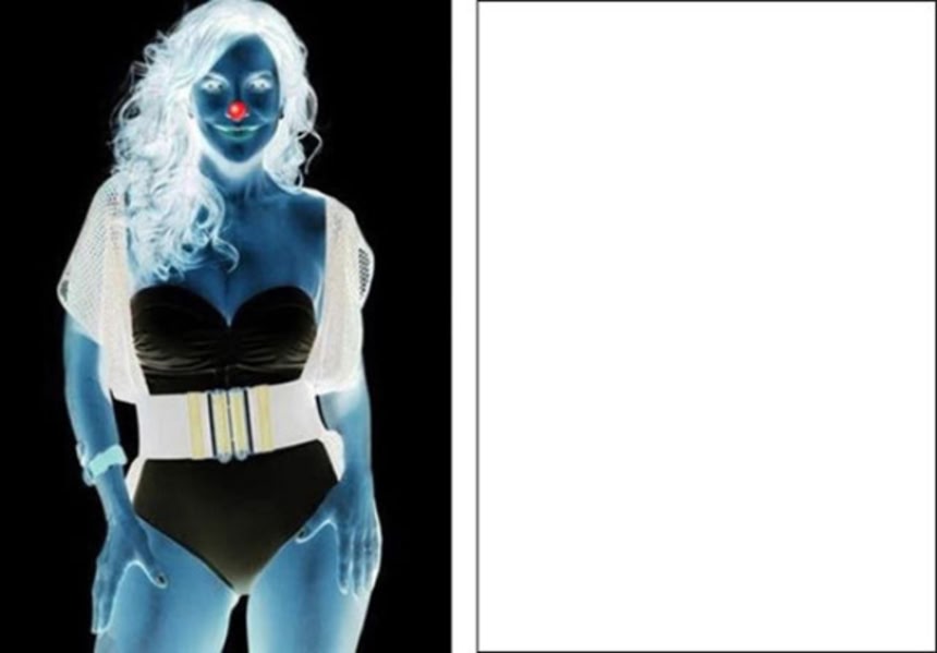 1.左側の女性の赤い鼻を30秒くらい見つめたら、視点を移して右側の真っ白な部分へ