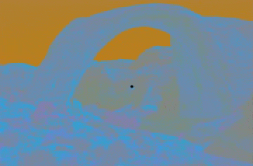 この画像を大きなサイズで見る6.画像が茶色と青色の方に切り替わるのを待って、その画像の中央の黒い点を見つめる。自動的に白黒画像に切り替わるのだが、白黒画像がカラー画像に見えてくる。