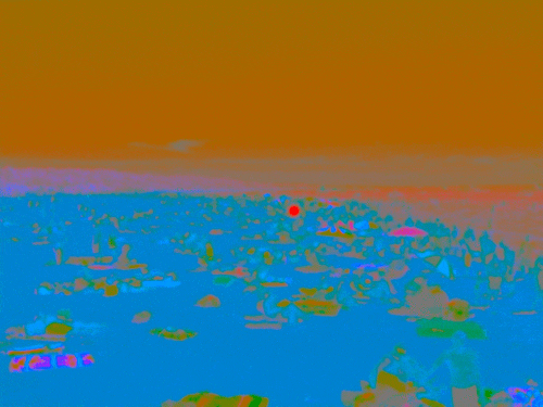 この画像を大きなサイズで見る4.画像が茶色と青色の方に切り替わるのを待って、その画像の中央の赤い点を見つめる。自動的に白黒画像に切り替わるのだが、白黒画像がカラー画像に見えてくる。